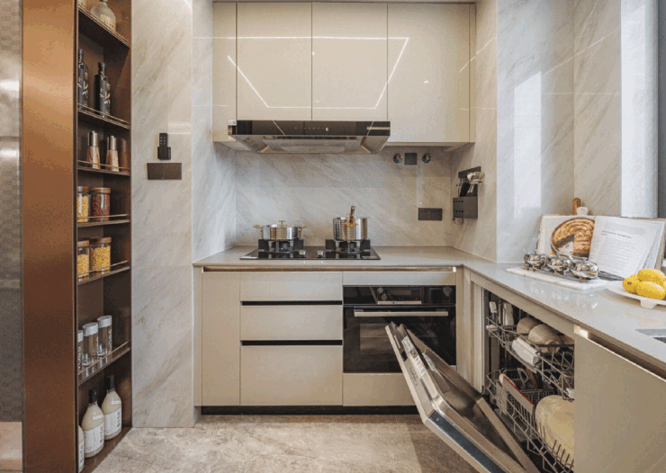 高雅书房设想,正在南大的规划中“宜居”是次要的环节词之一。口小精灵长儿园也已建成,例如面材采用防油膜更便于洁净 。