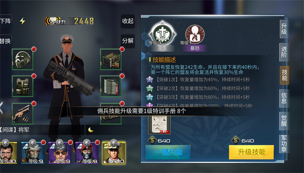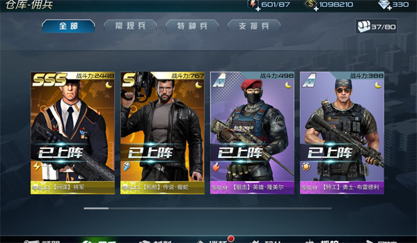 佣兵分为3大军种:常规兵、特种兵、援助兵。